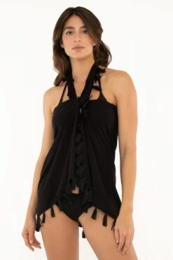 Deze Zwarte Fringe Pareo van Milonga is nu wat we noemen een super handig kledingstuk om snel over je bikini aan te trekken.
