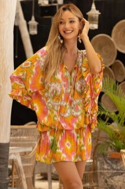 Miss June Jurk Mavis Oranje/Roze