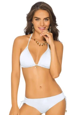 Dat het niet altijd een drukke print hoeft te zijn, bewijst deze prachtige witte triangel bikini van Phax.