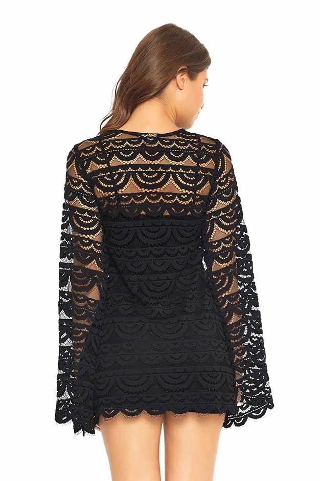 De zwarte kanten strand tuniek is perfect om snel over je bikini aan te trekken. Combineer de zwarte strand tuniek met één van onze prachtige zwarte kanten bikini’s en jij zal stralen op het strand.